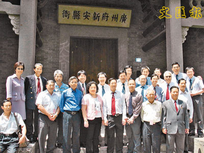 ■新界工商業總會訪問團參觀南頭古城,並於新安縣衙匾額前留影。