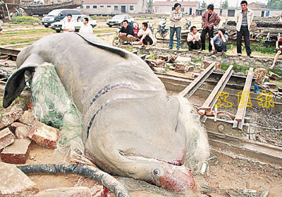 ■一條重達十噸的鯊魚23日被連雲港的漁民捕獲。路透社