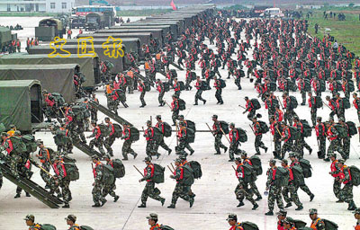 25日,武警湖北總隊舉行抗洪搶險演練。隨著汛期臨近,該隊組織1,200名官兵成立抗洪搶險突擊隊,從組織指揮到救災物資和後勤保障等方面進行拉動演練。中新社