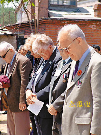 ■倖存的老兵們向當年在戰俘營中死難的戰友默哀。 本報駐遼寧記者吳雪帆、實習記者郭書博攝