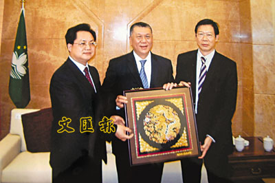 ■潮州市委市政府將潮繡禮品贈予澳門特首何厚鏵。