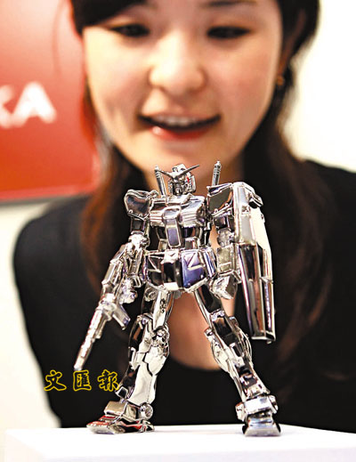 日本田中貴金屬公司,近日發表與玩具商萬代(Bandai)合作以白金製作的機動戰士高達。全高12.5厘米,重1.4公斤,全身共有78塊白金組件(不知是否用來配合其RX-78型號),頭頂還鑲有一顆0.15卡的鑽石,想真一下,大概用它來求婚也有可能成功。