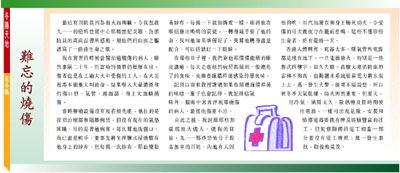 我在實習的時候曾醫治過燒傷的病人,雖然事隔二十年,但當時的情景仍歷歷在目。傷者也是在工廠大火中受傷的工人,在火災現場本能地大叫救命,結果吸入大量濃煙和灼傷口腔、氣管、頭面部,身上大面積燒傷。