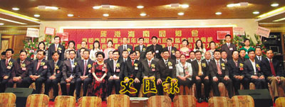 ■旅港海南同鄉會慶回歸10周年暨第19屆理監事就職典禮,賓主合照。本報記者鄭群 攝
