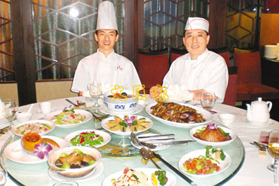 黃寶國師傅(右)和黃君民師傅都是淮揚菜名廚,兩人與劉明蘭一起坐鎮紅樓,讓港人認識淮揚菜。