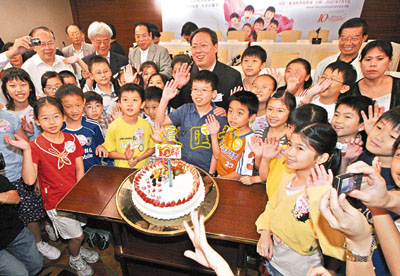 ■何志平率先與1997年7月1日出生的10歲童慶祝生日。本報記者潘政祁 攝