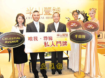 ■長實黃思聰(左二)與何家欣(左一)及南豐麥一擎(右三)推介何文田豪宅「半山壹號」的「私人門牌」特色。本報記者梁悅琴 攝