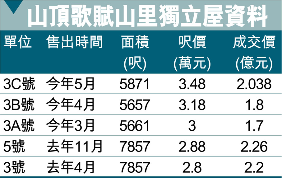 歌賦山5屋售罄 會德豐套10億 (圖)