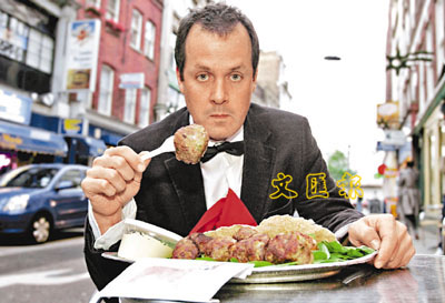 英國行為藝術家麥高恩周二在倫敦一個電台上當眾進食威爾斯高基狗﹙英女王伊利沙伯二世至愛狗種﹚的肉,以抗議女王王夫菲臘親王等人被指今年初獵狐的行為。法新社