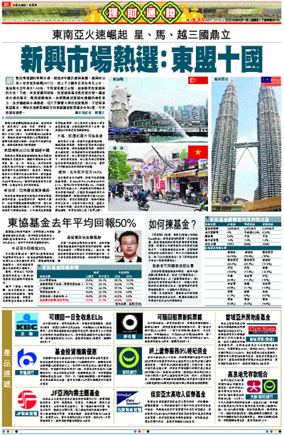 細數近期得寵的新興市場,相信非中國及越南莫屬。越南成功加入世界貿易組織(WTO),加上不少國有企業私有化上市,當地股市去年急升1.44倍,令投資者趨之若鶩,紛紛尋求投資越南的方法。不過,有投資顧問認為,投資越南基金是投資於單一國家或市場的基金,風險相應增加。如想要捕捉東盟成員國的增長潛力,並涉獵越南市場機遇,但又不願冒太高的投資風險,不妨留意東協基金。現時本港證監會認可的東盟國家股票基金共有5隻,可供投資者選擇。