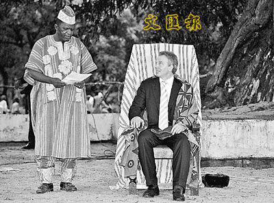 ■貝理雅前日獲塞拉里昂授予榮譽最高首長頭銜,披上棕色長袍,坐在首長座椅上。 法新社
