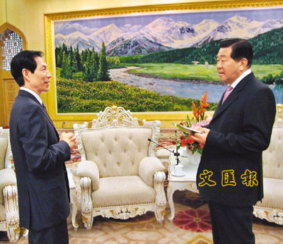 ■盧文端團長向賈慶林主席匯報商會會務發展情況。