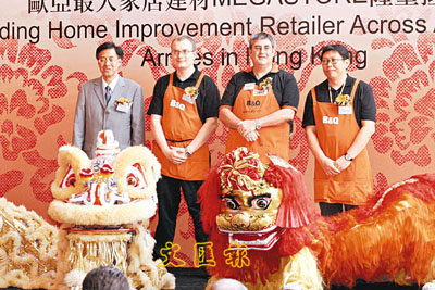 ■歐亞最大家居建材B&Q在港開幕。(右一)B&Q香港店總經理梁永康,旁為B&Q亞洲總裁紀司福。本報記者張偉民 攝