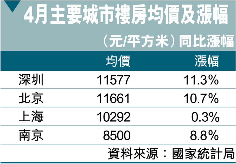 4月主要城市樓房均價及漲幅