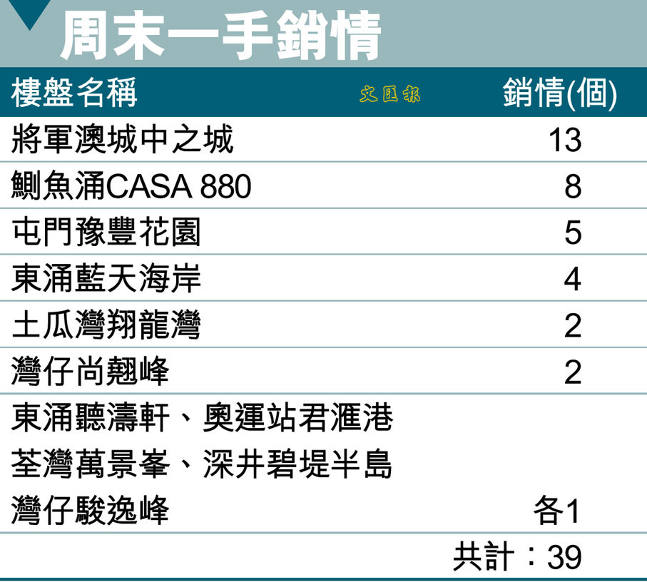 賣地理想 一手仍僅錄39宗成交 (圖)