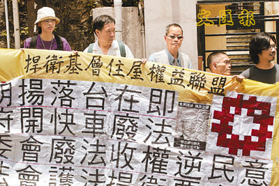 ■示威者拉出橫幅,抗議公屋加租不封頂。