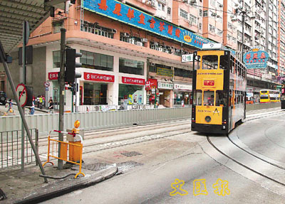 ■電車司機昨駕車轉彎駛入北角道時,車速明顯較以往慢,以防意外重演。本報記者溫瑞麟 攝