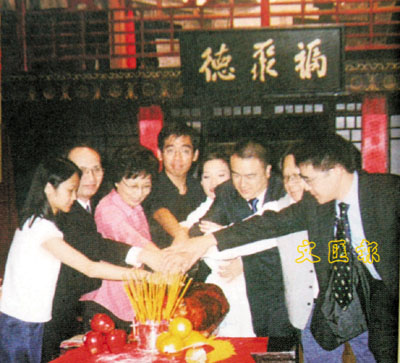 ■2000年《天下第一樓》在香港大會堂音樂廳上演,春天實驗劇團切金豬祈好運。