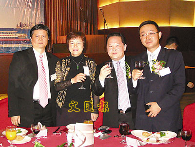 ■珠海高速客輪董事總經理梁凱斌(右一)、珠江客運總經理任琪生(左一)與文匯報副總經理吳建芳(左二)在聯誼會上合照。 本報記者沈清麗 攝