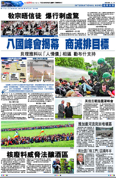 八國集團(G8)峰會昨日在德國的海利根達姆揭幕,而氣候轉變問題是本屆峰會的重點議題。有英國報章報道,即將卸任的首相貝理雅會要求美國總統布什還「人情債」,在會上支持氣候議案,以回報他當年支持美國出兵伊拉克,不過外界普遍預料各國難就減排溫室氣體的目標達成共識。