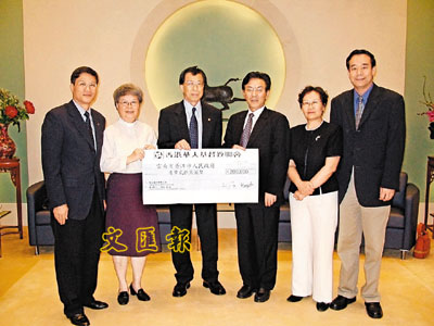 ■王永樂部長接受龐建新遞交的善款支票。本報記者沈清麗 攝