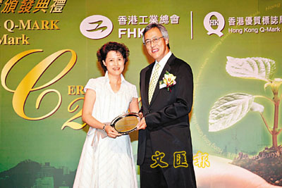 •香港Q嘜優質產品計劃認證