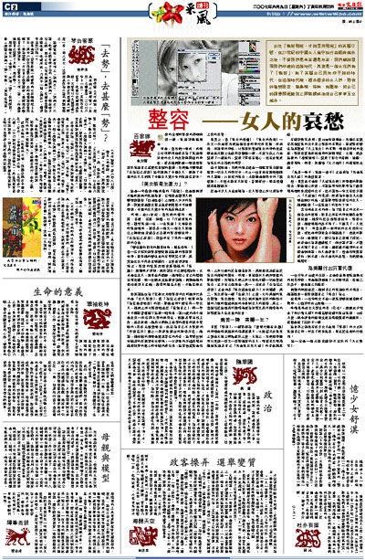 然而,在21世紀,當我們的報刊、雜誌、電視、電影、網絡,以「打造完美的您,讓您美麗一生,一生美麗」大幅廣告和美麗靚照,誘惑著一個又一個女人如過江之鯽般地走進各式各樣的整容醫院時,「女為悅己者容」,卻似乎有了另外一種更深的含義。