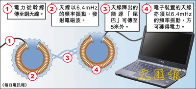 研究員集中研究磁力共振,利用電磁線圈來傳送能源。由於一般物件與磁場只有很輕微的互動作用,相對較安全,故磁力適合用於共振傳電。 ■《每日電訊報》/《每日郵報》