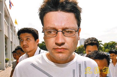 泰國有一名英國人(見圖)用咖啡室的電腦,向英國大型連鎖超市Tesco發出恐嚇電郵,聲言在食物下毒,意圖勒索200萬英鎊(約3,107萬港元)。該男子前晚被泰國警方拘捕,他已認罪,並向Tesco致歉。