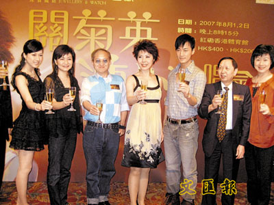 【本報訊】關菊英將於八月一及二日在紅館首次舉行個人演唱會,昨日在記者會上,林峰、鍾嘉欣和合辦機構高層黃柏高、張耀榮、樂易玲等均到來撐場。