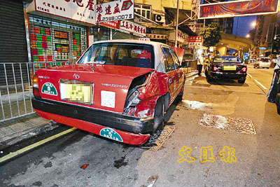 【本報訊】一名的士司機,昨凌晨將的士停在旺角界限街路邊,站在車頭檢查時飛來橫禍,突有一部積架房車駛至從後撞其的士車尾,司機被推前之的士撞傷,幸而傷勢不重,私家車司機事後因酒後駕駛被捕。