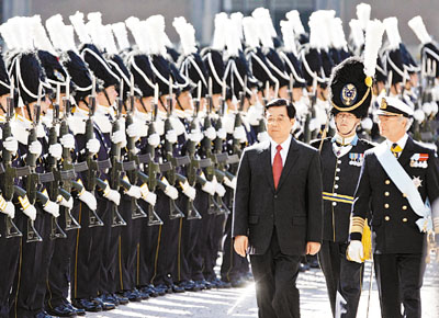 ■圖為胡錦濤主席在瑞典檢閱瑞軍儀仗隊。 法新社