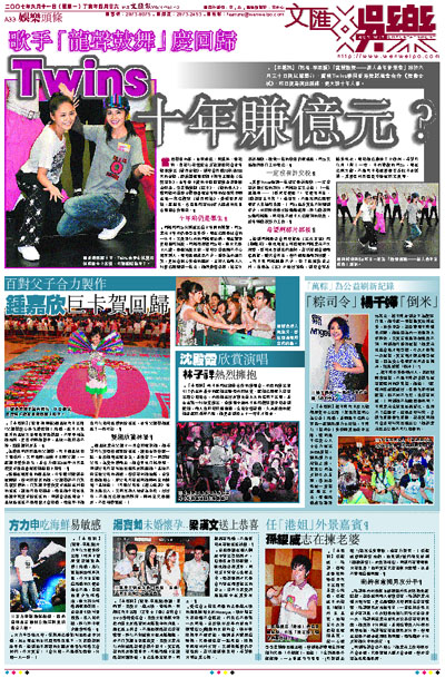 【本報訊】(記者 李思穎)「龍聲鼓舞——萬人青年音樂會」將於六月三十日假紅館舉行,當晚Twins聯同香港舞蹈總會合作《舞動全城》,昨日便為演出綵排,更大談十年人事。