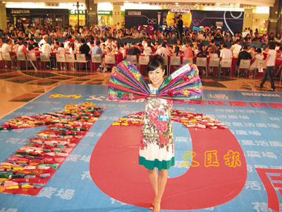 為慶祝即將來臨的父親節,昨日鍾嘉欣除了唱歌外,又即場與100對子女與父親,一起親手製作煲呔,並合力砌出500平方呎巨型賀卡預祝香港回歸祖國十周年。