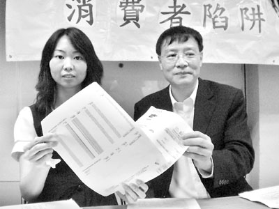 ■立法會議員王國興昨陪同吳小姐向記者展示電話帳單,促徹查濫收電話費事件。 本報實習記者周曉暘 攝