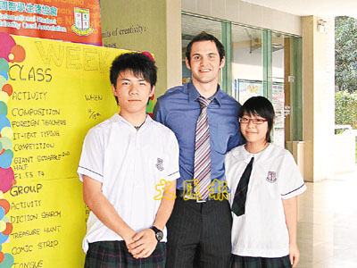■港生吳詠雯(右)及鍾迪遜與外籍教師在一起。