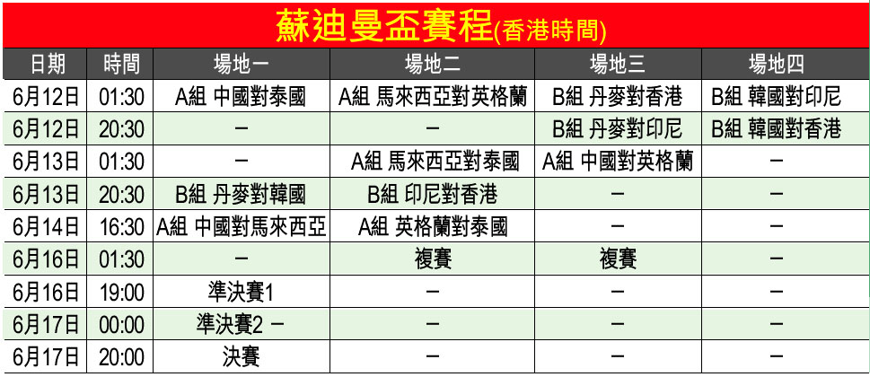 蘇迪曼盃賠率(至6月10日止) (圖)