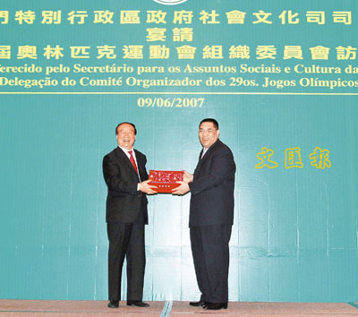 由蔣效愚帶領一行六人的北京奧組委訪問團於昨日抵澳,訪問團行程緊湊。昨日抵澳後出席「北京奧運會籌辦工作」報告會,蔣效愚擔任主講嘉賓,在報告會上結合投影片扼要概述了北京奧組委的籌組工作進程。與會者一致認為,通過報告會進一步了解到北京奧運的籌辦情況,十分感謝北京對澳門的關注。