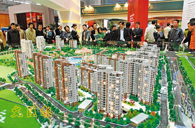 ■商務部及國家外匯管理局聯合發布通知,將嚴格控制外商投資高檔房地產。圖為內地某樓盤展銷會。資料圖片