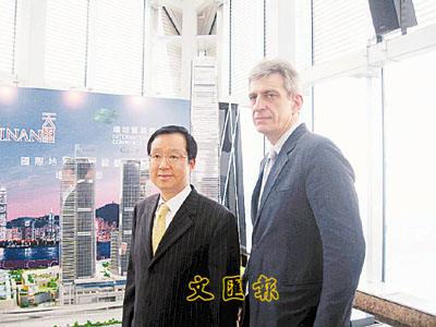 ■新地代理執行董事雷霆 (左)與天璽建築及設計KPF合夥人Paul Katz 合攝。 實習記者蔡曉穎 攝