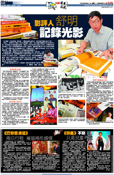 有得講無得睇,順帶連在本港發表文章的機會也大跌。舒明表示,若當年不是經舒琪介紹,就沒機會把寫下有關日本電影(DVD)的文章放到內地的《DVD導刊》發表。「集結裡面一些文章,再加添幾個專題性篇章,就成了《平成年代的日本電影 1989-2006》這本書。不單是影評集、電影及導演的介紹書,還有一些相關電影資料,希望能成為一種有點『史料性』的讀物。」