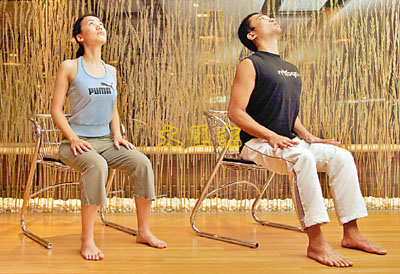 保持平均的呼吸,慢慢將頭移向上,望向天花板。