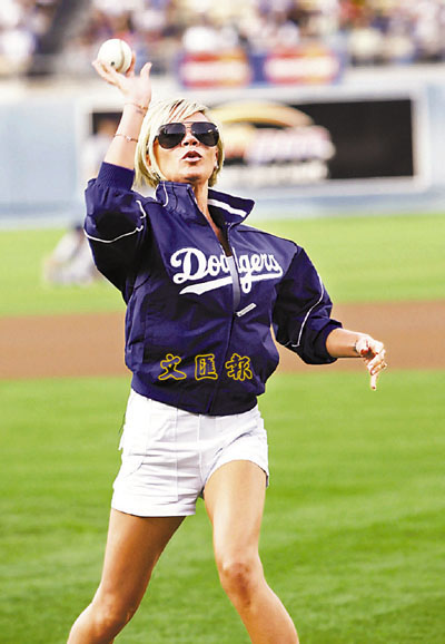 當日碧咸嫂穿上Dodgers隊的球衣,為了可拋出漂亮一球,她在正式埋位前便與Dodgers隊員不斷練習,十分認真。碧咸嫂對前來採訪的傳媒表示要主持開波禮十分緊張,但旁觀者就大讚她在練習時表現不俗。「我去過不少足球場,但這兒(捧球場)是不同的。我會盡力拋好個波,能夠主持開波禮是我的光榮,大衛也會在家看的。」Dodgers的經理Tom Lasorda就乘此大好機會為球隊宣傳,他在鏡頭前要碧咸嫂宣稱自己擁護該球隊,入鄉隨俗的碧咸嫂也照做如儀。
