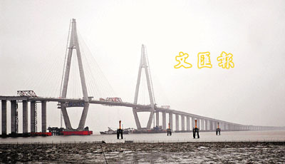 ■杭州灣跨海大橋主航道橋昨日順利合龍。新華社