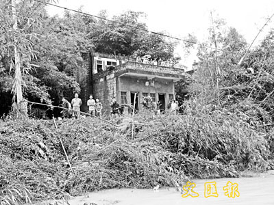 ■交通中斷,被洪水圍困的災民只能望河興嘆。 本報記者 攝