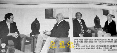 ■新加坡主要報紙15日刊登台灣前「行政院長」蘇貞昌、國民黨「總統」參選人馬英九14日相繼拜會李光耀的照片。 中央社