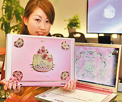 日本電器生產商NEC,近日發布一部由施華洛世奇水晶(Swarovski)組合而成吉蒂貓圖案的手提電腦。該電腦配備有AMD Sempron處理器的CPU、15.4吋的LCD熒幕,更有配合電腦的吉蒂貓桌面及熒幕保護軟件。這超可愛的電腦,將於6月19日正式發售,作價大約13,000港元。