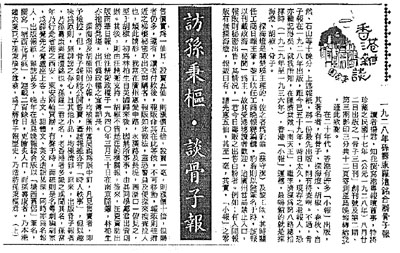 為了追蹤香港報業的真相,湯仲光還做了調查記者。有篇《訪孫秉樞.談骨子報》,是相當難得的資料。《骨子》報創辦於一九二八年,由孫壽康、羅澧銘合辦。孫秉樞者,為香港鐘表業巨子;孫壽康即其尊翁,湯仲光「為了解骨子報歷史,乃造訪孫秉樞焉。」
