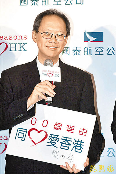 國泰行政總裁陳南祿話,公司以前送機票多數是「抽獎」,參與者免費搭機全憑運氣,此次要由大學教授、電台主持、著名作家等知名人士落手落腳評出「100個愛香港的理由」,參加者需要實力才能取勝。