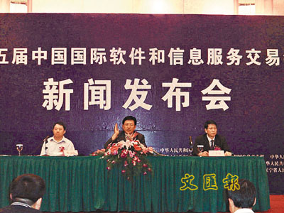 ■大連市副市長戴玉林在軟交會新聞發布會上。